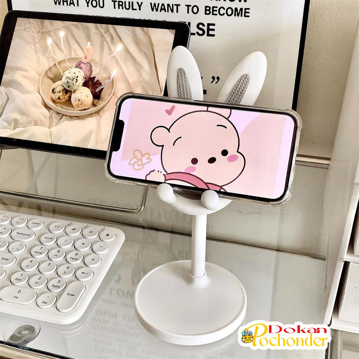 Available now at Pochonder Dokan, this creative desk accessory keeps your phone stable while adding a charming decorative element to your workspace. The bunny ear design and soft color options make it especially popular among students, content creators, and anyone who enjoys a clean, aesthetic desk setup.